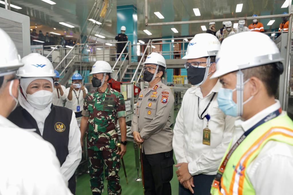 Gubernur Jatim Khofifah Indar Parawansa, didampingi Pangdam V Brawijaya Mayjend TNI Nurchahyanto dan Kapolda Jatim Irjen Pol Nico Afinta berkunjung ke pabrik minyak goreng di Gresik. Disini secara khusus Gubernur Khofifah bertanya langsung dengan produsen minyak goreng, termasuk menanyakan apa yang menjadi kendala dari sisi produsen, sehingga berdampak pada pasokan komoditas minyak goreng di pasaran, khususnya di wilayah Jawa Timur.