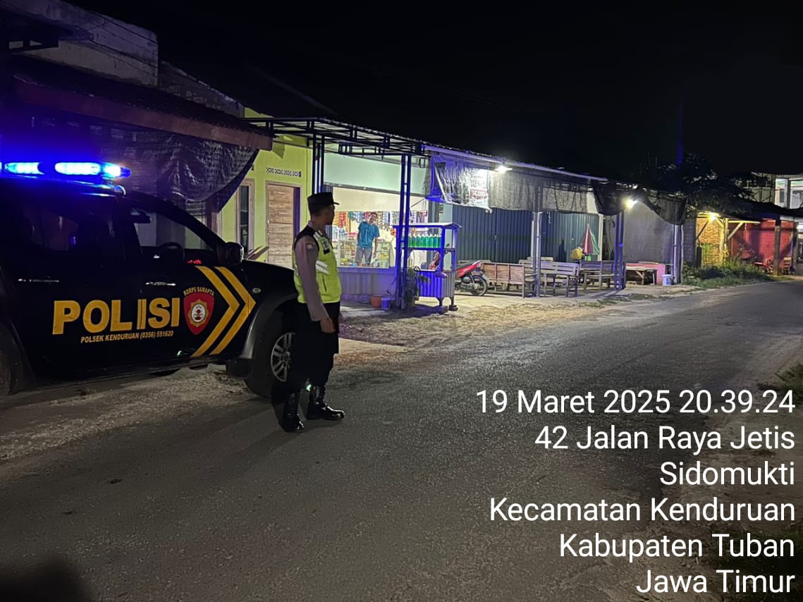 melaksanakan patroli di pertokoan pasar Desa Sidomukti, Kec. Kenduruan,