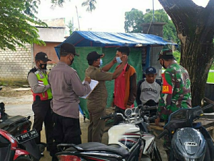 Patroli bersama giat Yustisi menyasar tempat-tempat kerumunan warga masyarakat, seperti Pasar, pertokoan, warung kopi dan tempat nongkrong lainnya, dengan memberikan teguran lisan dan tertulis kepada warga masyarakat yang tidak memakai masker.