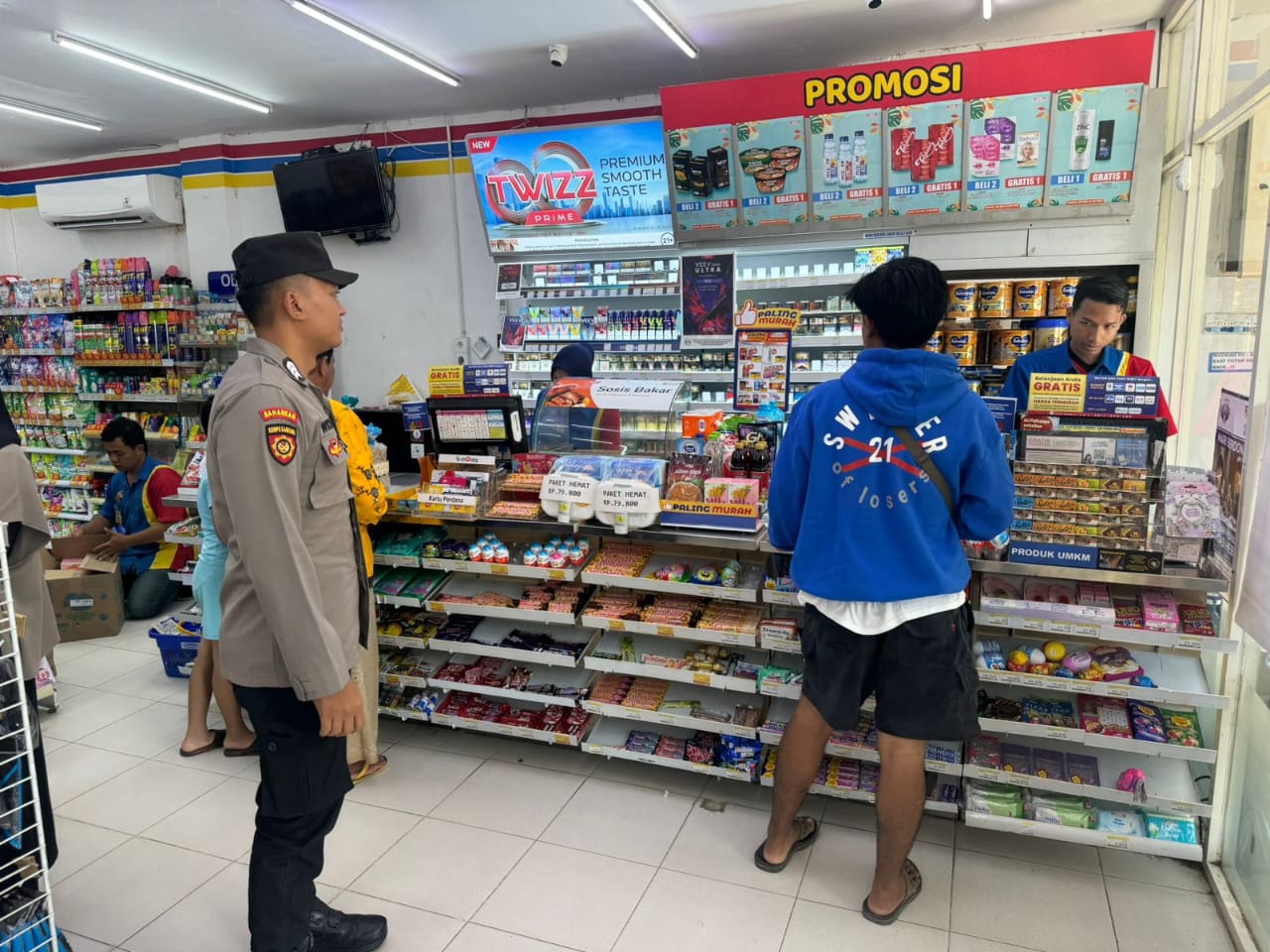 Senori – Personel Polsek Senori Polres Tuban Polda Jawa Timur melaksanakan patroli di Minimarket. Selain untuk mengantisipasi terjadinya tindak pidana, petugas kepolisian juga melakukan pemeriksaan terhadap makanan dan minuman yang dipajang oleh Minimarket, Rabu (6/8/2025).