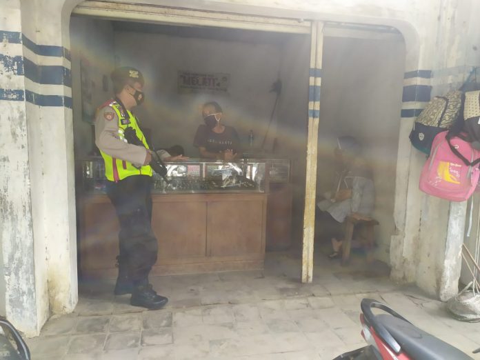 Patroli ke toko kuning sangatlah penting. Tujuannya untuk antisipasi adanya pelaku kejahatan serta menghimbau pengunjung untuk mengikuti aturan protokol kesehatan, ujar Aiptu Suprayitno.