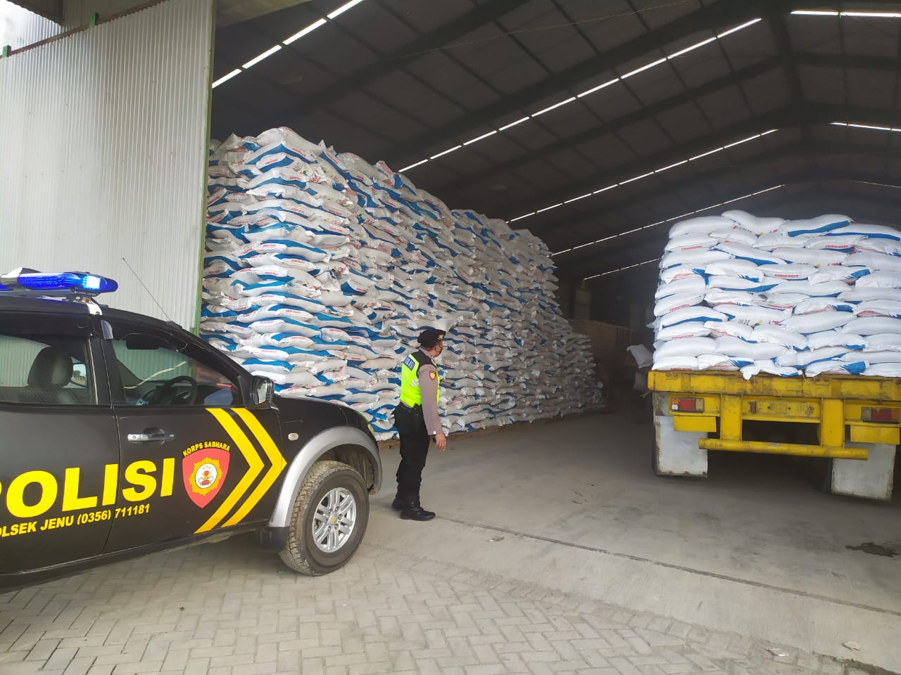 seopini.com-polrestubanpoldajatim Polsek Jenu polres Tuban dalam kesempatan tersebut A SPKT Aiptu Chambali danmenyampaikan pesan pesan Kamtibmas kepada karyawan Gudang Pupuk agar selalu meningkatkan kewaspadaan terhadap semua kendaraan yang masuk gudang pada yang antri muat atau bongkar pupuk agar dicatat sopir dan Nopol kendaraanya, Lakukan patroli pada jam jam rawan di lingkungan gudang pupuk untuk antisipasi adanya pencurian pupuk, segera telpon ke Polsek kalau ada hal hal yang mencurigakan. Selain itu semua Karyawan gudang harap memakai masker untuk meminimalisir bau pupuk serta penyebaran virus Covid 19. Pendistribusian pupuk bersubsidi ke kios kios yang ada di wilayah Jenu di harapkan sesuai dengan kapasitas kebutuhan petani sehingga para petani mendapatkan semua bagi yang berhak.
