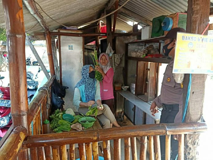 Nampak terlihat Aiptu Hidayat dan Bripka Riyono berdialogis dengan warga masyarakat Desa Sidomukti di seputaran lokasi pasar, sekaligus sampaikan pesan dan himbauan terkait kamtibmas dan penerapan Protokol kesehatan.