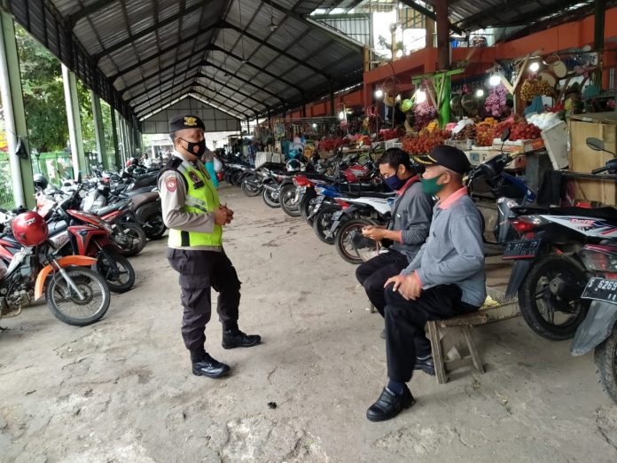 seopini.com-polrestubanpoldajatim Anggota Polsek Rengel Polres Tuban menggelar patroli dialogis dengan juru parkir Pasar Desa Rengel Kecamatan Rengel Kabupaten Tuban. Kamis, (25/03/2021).