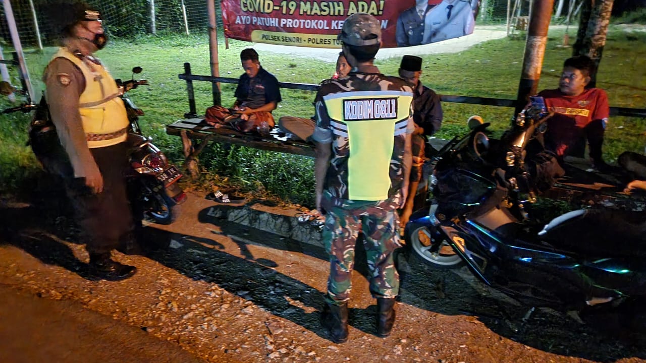 Patroli Gabungan Polsek Senori Polres Tuban Bersama TNI Razia Pelanggar Prokes