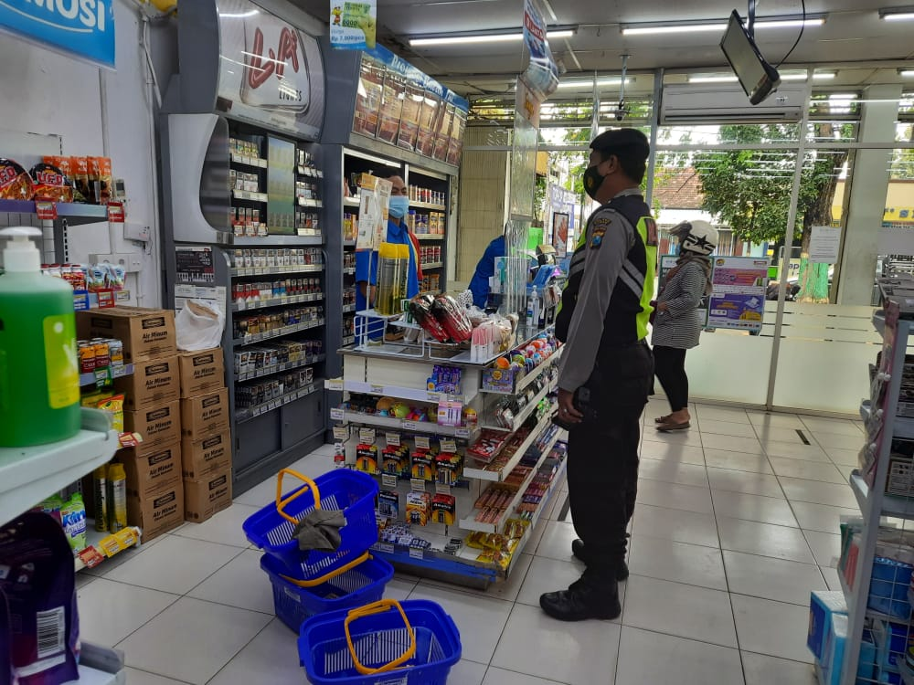 seopini.com-polrestubanpoldajatim Unit patroli Polsek Tuban melaksanakan patroli dengan sasaran di sejumlah toserba yang ada diwilayah kecamatan Tuban. termasuk diantaranya toserba Indomaret yang tepat berada di jalan Basuki Rahmad Tuban.