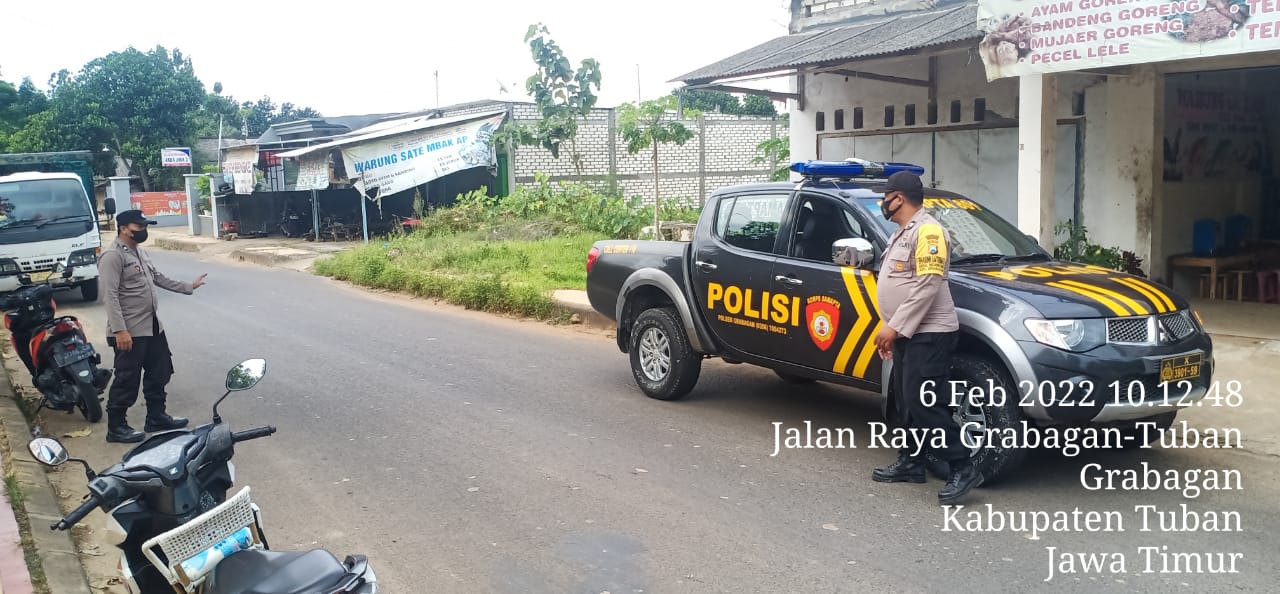 Guna mengantisipasi terjadinya tindak Kriminalitas diwilayah hukum Polsek Grabagan, kegiatan Patroli selalu digelar ditempat rawan dengan menggunakan ranmor Dinas 801 Samapta maupun jalan kaki dalam kurun waktu 1×24 jam secara berkesinambungan. Minggu, 6 Februari 2022.Pada kesempatan siang itu anggota Polsek Grabagan Aiptu Suwignyo dan anggota melaksanakan giat patroli jalan kaki di jalur disekitar Pertokoan Grabagan sambil menyapa warga yang melintas serta mengawasi gerak-gerik orang asing yang melintas di jalan guna mengantisipasi aksi pelaku kejahatan yang hendak melancarkan aksinya.Anggota Polsek Grabagan hadir ditengah tengah Aktifitas masyarakat memberikan rasa aman dan nyaman warga merupakan atensi Kapolres Tuban Polda Jatim AKBP DARMAN, S.I.K., yang harus ditindaklanjuti dan Dilaksanakan oleh kepolisian dijajaran Polres Tuban demi terwujudnya stabilitas kamtibmas yang aman kondusif. Ujar “AKP DARWANTO, S.H.” selaku Kapolsek Grabagan