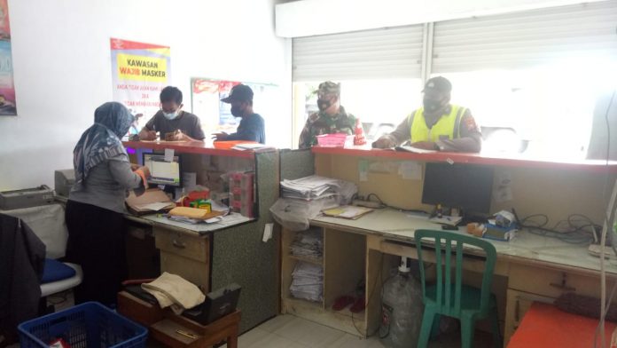 seopini.com-polrestubanpoldajatim Anggota patroli polsek jenu polres Tuban melaksanakan Patroli sambang dan dialogis antisipasi 3C dan himbauan petugas kantor pos Jenu tentang protokol kesehatan serta gerakan memakai masker.