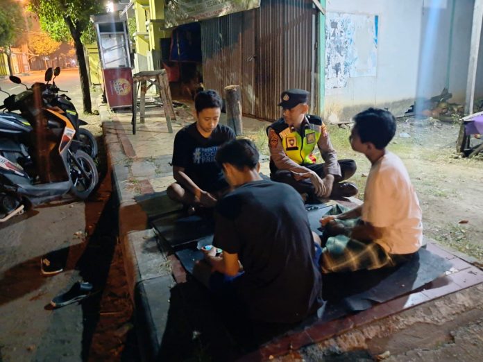 Senori – Dua Personil Polsek Senori Polres Tuban Aiptu Ahmadi dan Bripda Mahata terlihat memberikan himbauan kamtibmas kepada komunitas pemuda yang sedang nongkrong di Warkop yang terletak di jalan Letda Sucipto Senori, Jumat (5/9/2025) malam.