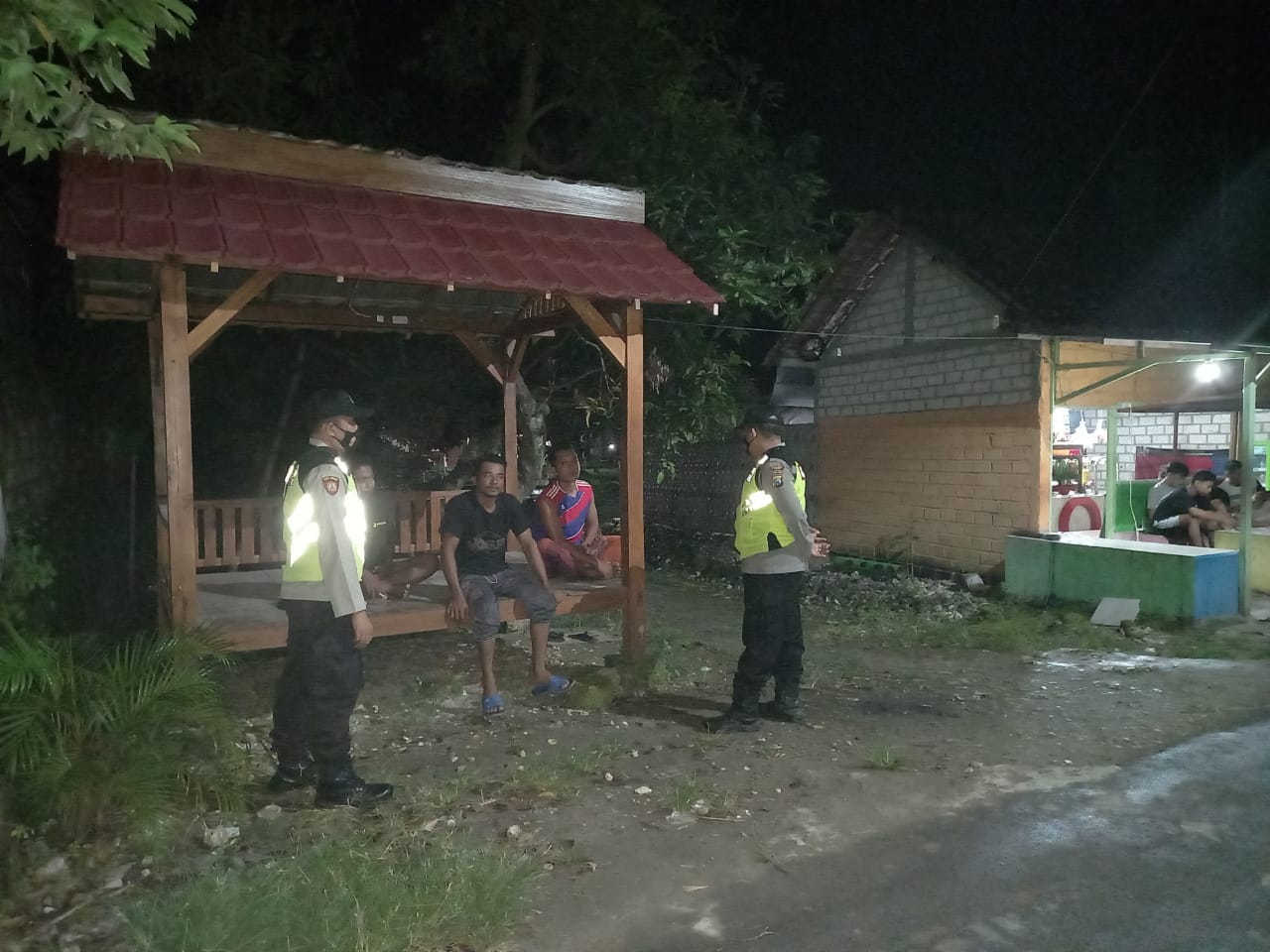 “Kami berharap warga tetap disiplin protokol kesehatan saat melaksanakan siskamling, apalagi kegiatan siskamling dilaksanakan secara kelompok”, tutur Aiptu Masrobun, salah satu petugas.