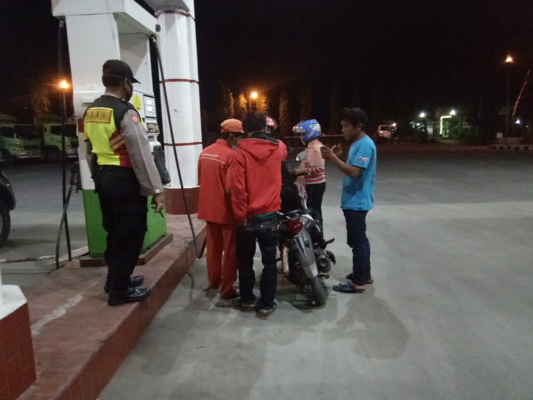 Patroli Malam, Polsek Rengel Imbau Pegawai SPBU Waspada Dengan Situasi Dan Terapkan Prokes Saat Bekerja