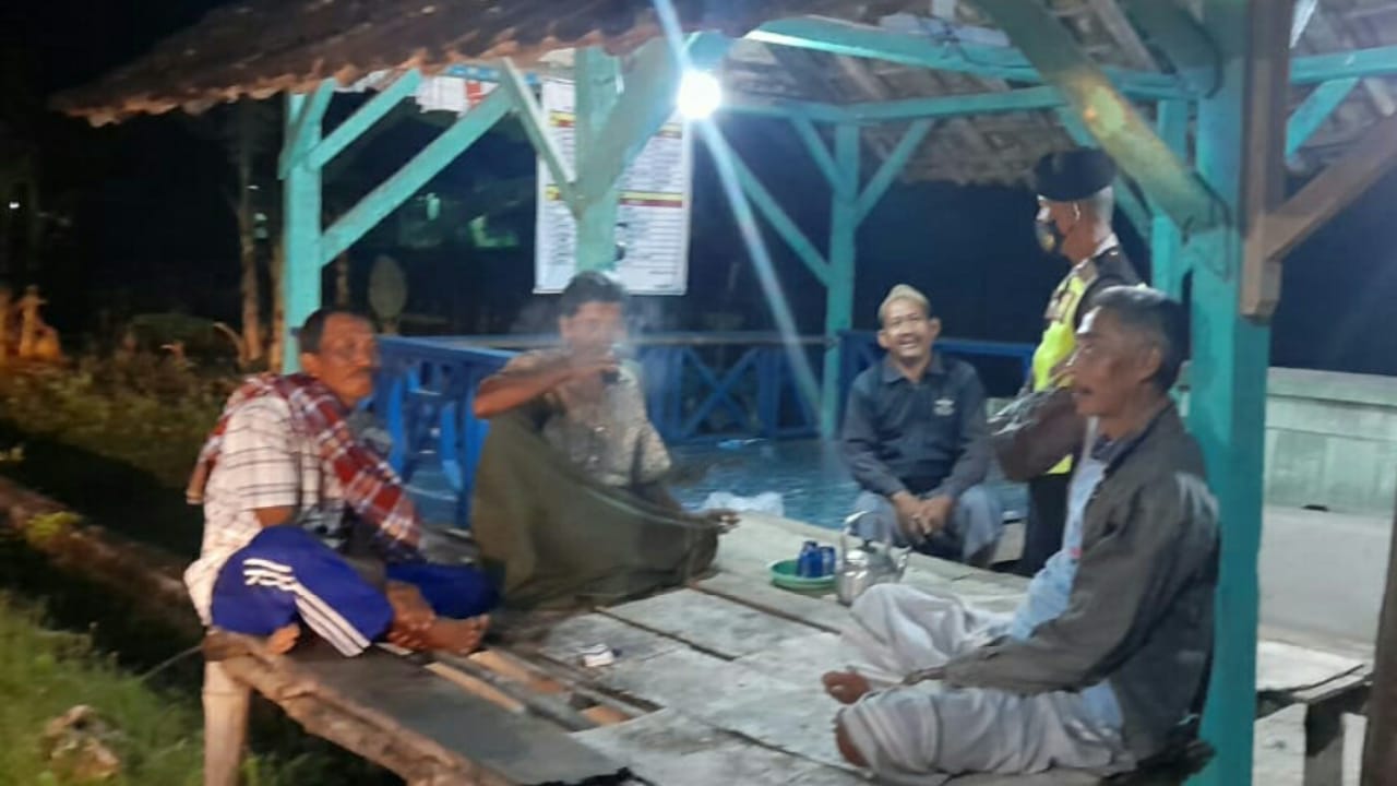 Dalam kesempatan tersebut petugas patroli menghampiri warga di pos Kampling Desa Saringembat guna mengajak warga untuk menjaga lingkungannya dengan rutin siskamling.