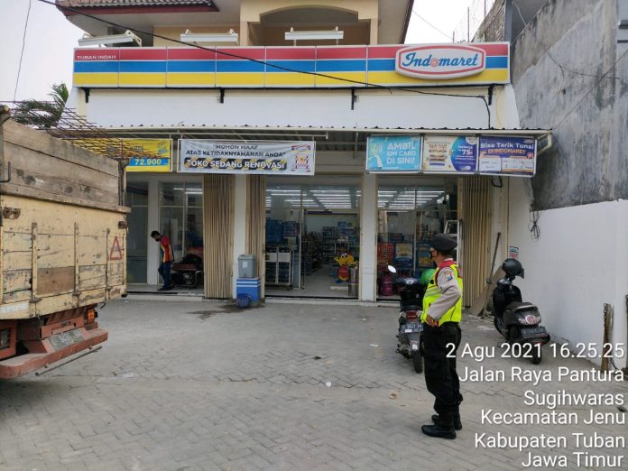seopini.com – PolresTubanPoldaJatim Regu patroli polsek jenu Polres Tuban Polda Jawa Timur, Aiptu Suprayitno melaksanakan patroli di Minimarket guna memberikan himbauan kepada karyawan dan konsumen untuk menerapkan prokes dan PPKM level 4 serta saat memarkir kendaraan di gunakan kunci tambahan.