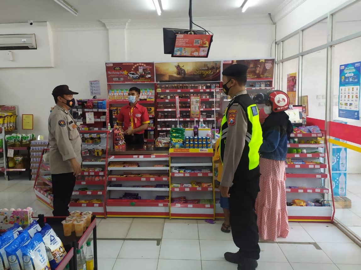 seopini.com – PolresTubanPoldaJatim Regu patroli polsek jenu Polres Tuban Polda Jawa Timur, Aiptu Sulkhan melaksanakan patroli di Minimarket guna memberikan himbauan kepada karyawan dan konsumen untuk menerapkan prokes dan serta saat memarkir kendaraan di gunakan kunci tambahan.