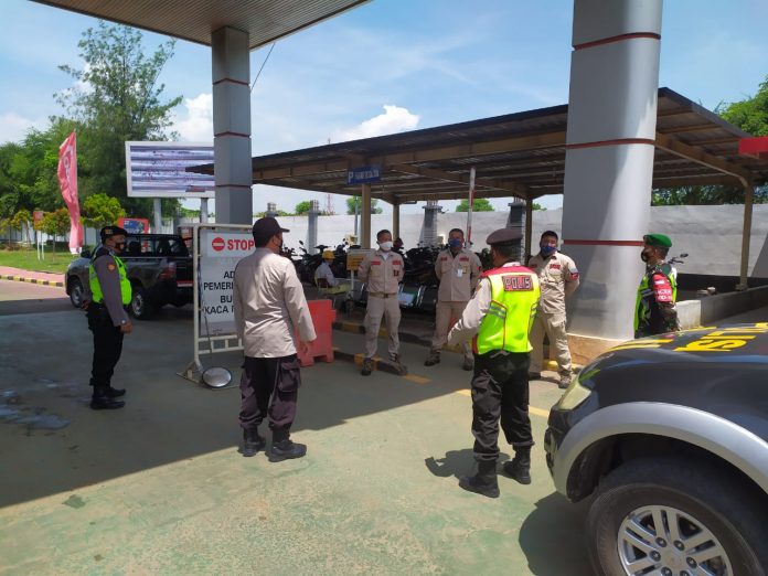 seopini.com-polrestubanpoldajatim Anggota Polsek jenu Aiptu Sulkan beserta rekan TNI patroli obvitnas PT TBBM Pertamina guna memberikan himbauan kepada rekan security dan pekerja untuk mentaati protokol kesehatan Covid 19.