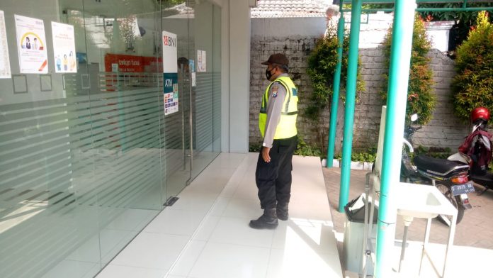 seopini.com-polrestubanpoldajatim Polsek jenu Polres Tuban patroli di perbankan wilayah jenu, mengingat hari libur perkantoran (Sabtu 13 Matet 2022) tidak lupa mengingatkan kepada pihak keamanan perbankan untuk setip min 1 jam sekali berganti mengecek tempat tempat yg tidak terkena area CCTV sehingga meminimalisir terjadinya tindakan kejahatan.