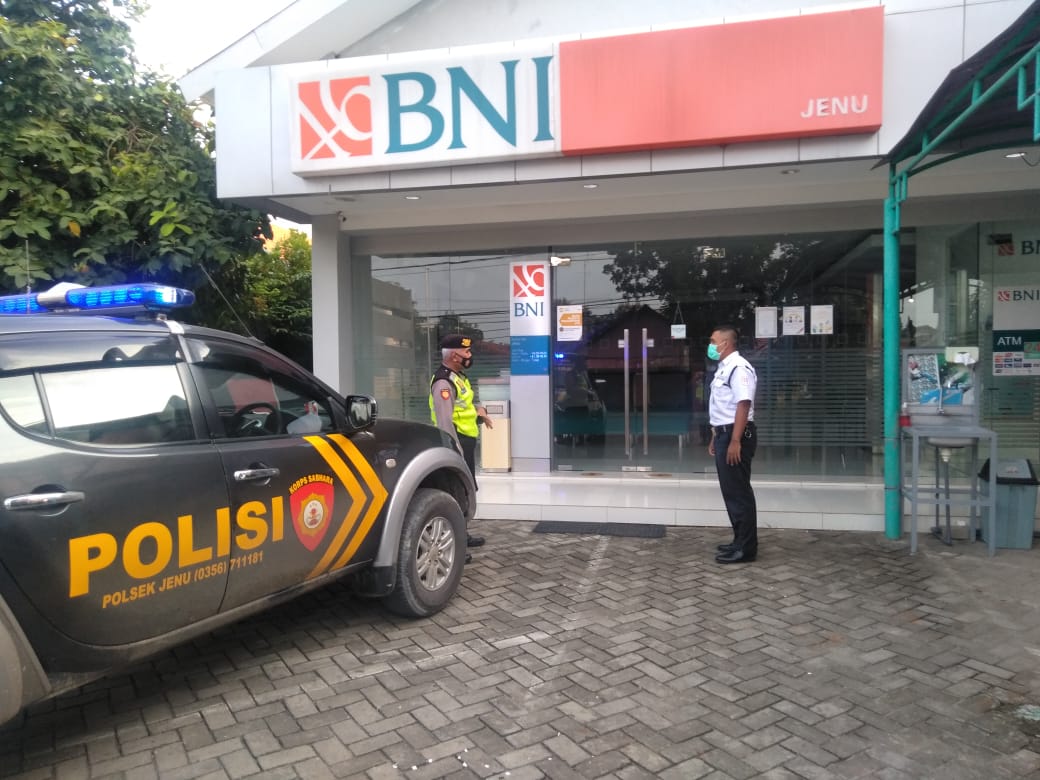 Kapolsek Jenu AKP Rukimin S.H M.H.menitipkan pesan kamtibmas kepada masyarakat yang berkegiatan di luat rumah untuk selalu menaati protokol kesehatan (jaga jarak,cuci tangan dan pakai masker) diharapkan tetap tercipta situasi kamtibmas yang aman, kondusif dan sehat. Kita lakukan patroli rutin pada pertokoan, perkantoran maupun mesin ATM, mengingat tempat tersebut pada saat jam aktifitas warga. Dengan kehadiran Polisi ditengah-tengah masyarakat akan memberi rasa aman dan nyaman kepada masyarakat yang melakukan aktifitas. Kamis 01 April 2021.