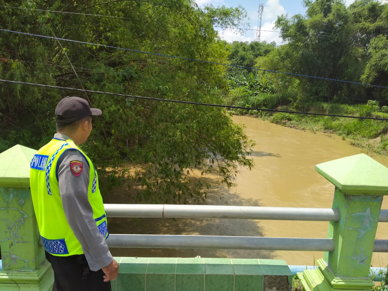 Guna antisipasi bencana banjir dan jaga situasi kamtibmas yang aman dan kondusif, anggota polsek Parengan polres Tuban memantau debit air kali kening di desa parangbatu Kecamatan Parengan kabupaten Tuban,Minggu 2/2/2020