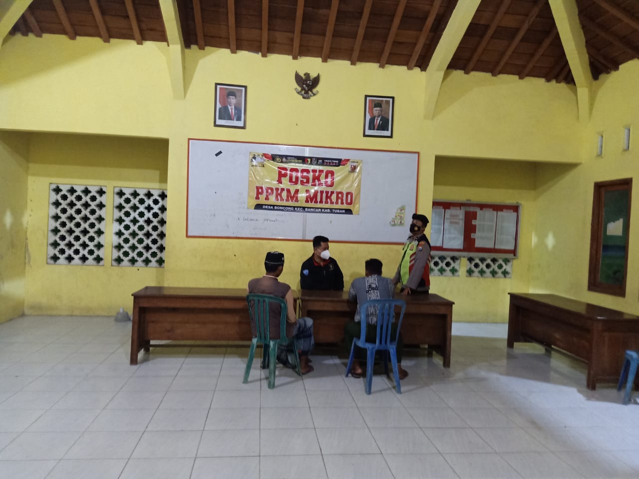 seopini.com-polrestubanpoldajatim Polsek Bancar Polres Tuban dalam menjaga hubungan yang harmonis dan Komunikasi yang aktif  dengan pemerintahan desa salah satu caranya yaitu sering melakukan kegiatan Sambang Desa.Pada kesempatan malam itu dilakukan oleh anggota Polsek Bancar., Melaksanakan kegiatan Sambang Desa di Ds Bancar dengan menitipkan pesan Kamtibmas terkait pembentukan Posko PPKM ( Pemberlakuan Pembatasan Kegiatan Masyarakat ) berkolaborasi dengan Tiga Pilar Desa dalam rangka penanggulangan Covid 19.
