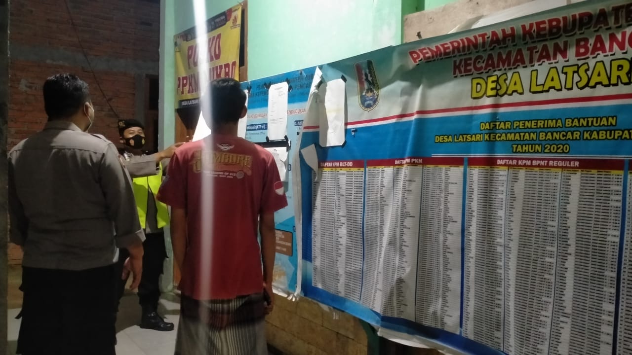 seopini.com-polrestubanpoldajatim Polsek Bancar Polres Tuban dalam menjaga hubungan yang harmonis dan Komunikasi yang aktif dengan pemerintahan desa salah satu caranya yaitu sering melakukan kegiatan Sambang Desa. 24 maret 2021.Pada kesempatan malam itu dilakukan oleh anggota Polsek Bancar., Melaksanakan kegiatan Sambang Desa di Bancar dengan menitipkan pesan Kamtibmas terkait pembentukan Posko PPKM ( Pemberlakuan Pembatasan Kegiatan Masyarakat ) berkolaborasi dengan Tiga Pilar Desa untuk selalu mengingatkan warganya Supaya selalu mematuhi Protokol Kesehatan dalam rangka penanggulangan Covid 19.