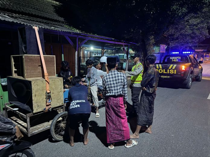 Senori – Dalam rangka memelihara kamtibmas yang aman dan kondusif selama bulan Ramadhan. Kepolisian Sektor (Polsek) Senori Polres Tuban Polda Jatim menggelar patroli sahur dengan memberikan himbauan kepada para remaja yang membangunkan sahur menggunakan musik tongklek, Minggu (22/2/2026).