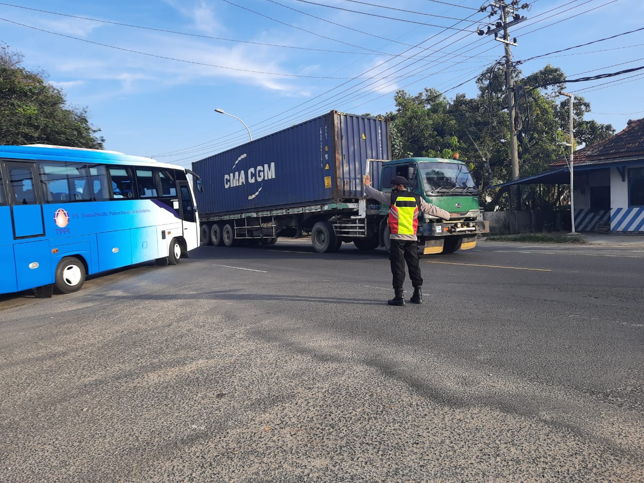 seopini.com-polrestubanpoldajatim Anggota patroli polsek jenu polres Tuban melaksanakan gatur lalin jalur Pantura simpang 3 pos Purworejo, ini rutin kita lakukan mengingat banyak kendaraan yang keluar masuk perusahaan dan di khawatirkan tindak pidana meningkatkan khususnya di kawasan yang jarak pemukiman satu dengan lainya jauh dan sepi biasanya kesempatan untuk melakukan tindakan kejahatan terjadi. Sehingga polsek jenu melaksanakan bantu penyebrangan keluar masuk kendaraan yang akan di perusahaan, antisipasi laka lantas serta pelemparan terhadap kaca mobil penggunaan jalan mengingat banyak aktivitas warga juga yang menggunakan R2.