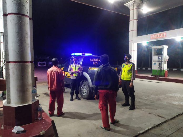 seopini.com-polrestubanpoldajatim Anggota Polsek jenu Polres Tuban melaksanakan patroli SPBU Dasin Sugihwaras guna antisipasi terjadinya tindak pidana seperti curat, curas, maupun curanmor maupun penyalahgunaan BBM bersubsidi.