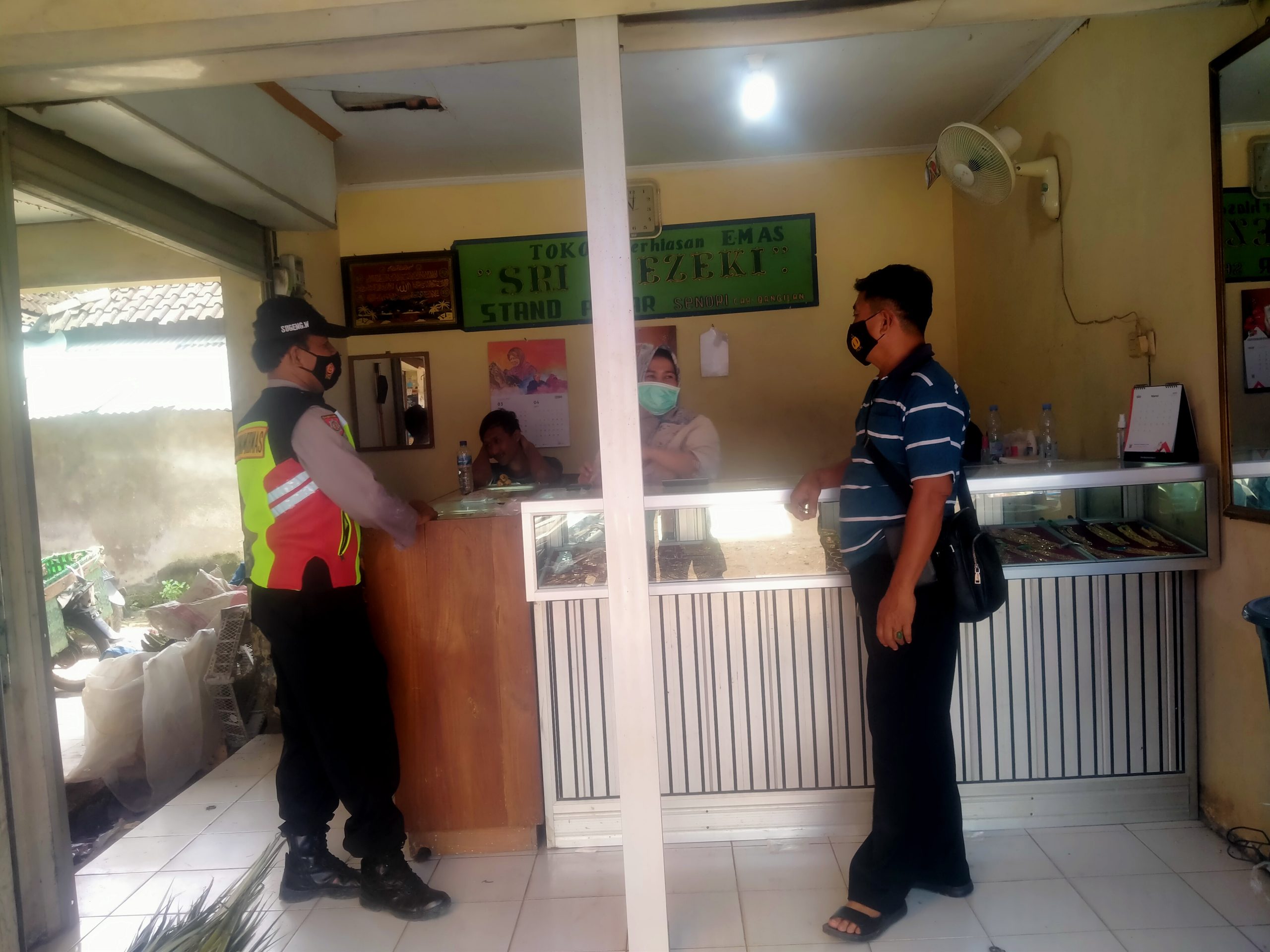 Terpantau kali ini personel Polsek Senori Polres Tuban yang dipimpin KaSPKT Aiptu Sugeng Waluyo bersama anggota unit sabhara melaksanakan patroli sambang di toko emas Sri Rejeki yang berada di komplek pasar tradisional Desa Jatisari Kecamatan Senori, Sabtu (27/3/2021)