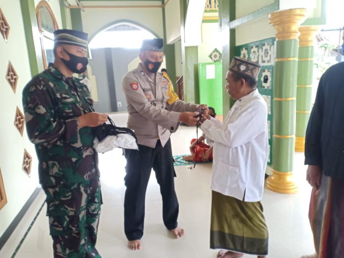 Mencegah penularan Covid-19 di Wilayah desa binaannya, Aiptu Febri Afandi, S.H., selaku Bhabinkamtibmas Polsek Widang bersama Babinsa Koramil 0811/11 sambangi warganya dan bagikan masker, Sabtu (08/05/2021).
