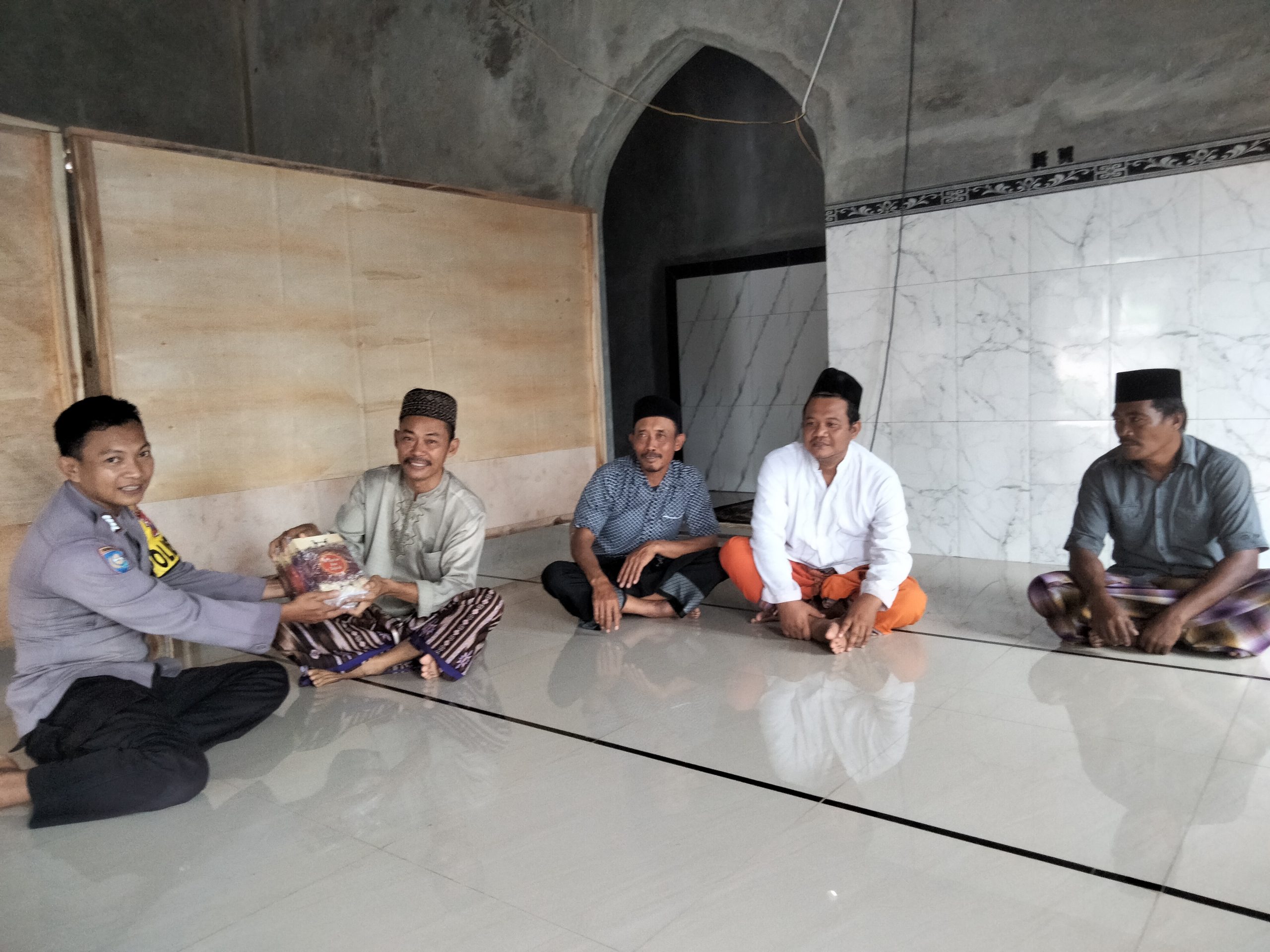 Selepas melaksanakan sholat berjamaah, Kanit Binmas, BRIPKA Eko Hadi Saputro menyerahkan bantuan berupa Al-Qur’an.