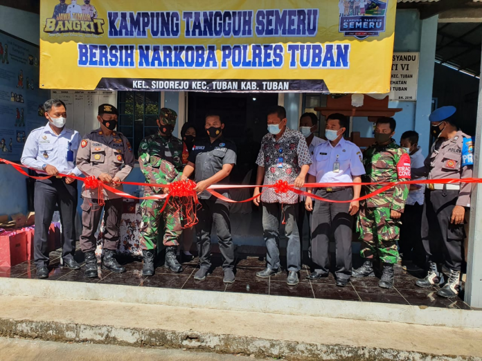 seopini.com – PolresTubanPoldaJatim Kapolsek Tuban AKP M. Geng wahono pada hari Rabu tanggal 16 Juni 2021, pukul 09.30 sampai 10.15 WIB, di Posko Kampung Tangguh Semeru Rt 05 Rw 01 Kelurahan Sidorejo Kec. Tuban, Kab. Tuban telah dilaksanakan kegiatan Peresmian Kampung Tangguh Semeru Bersih Narkoba Polres Tuban.