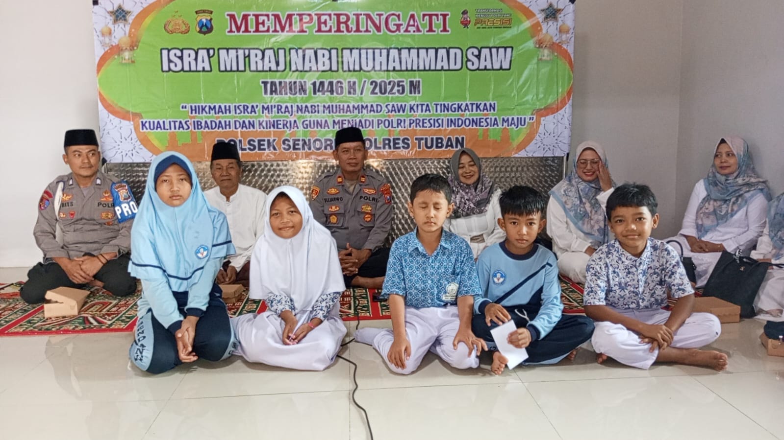 Senori – Kepolisian Sektor (Polsek) Senori Polres Tuban Polda Jawa Timur yang dipimpin oleh Kapolsek Senori Iptu Sudjarwo, S.H., melaksanakan kegiatan peringatan Isra Mi’raj Nabi Muhammad SAW tahun 2025 M / 1446 H di Mushola Al Ikhlas Mapolsek Senori, Kamis (30/1/2025).