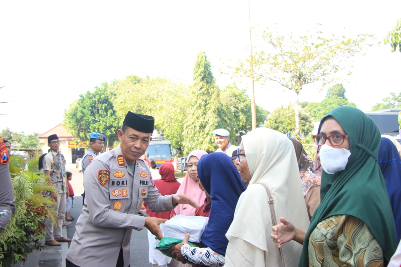 Tuban – Dalam rangka peringatan Maulid Nabi Muhammad SAW 1447 H/2025, Polres Tuban Gelar kegiatan Doa bersama di Masjid Baitul Mu’min, Jumat (12/09/2025) siang.Kegiatan yang berlangsung sederhana usai sholat Jum’at ini dihadiri oleh Kapolres Tuban AKBP William Cornelis Tanasale, S.I.K., ketua Bhayangkari Cabang Tuban Ny Meily William para pejabat utama, Kapolsek jajaran serta anggota Polres Tuban.Mengusung tema “Dengan meneladani akhlak Rosulullah SAW Kita wujudkan Polri Presisi guna mendukung Asta Cita” kegiatan diawali dengan pemberian santunan kepada sejumlah yatim piatu.Selain anggota yang ada di Polres Tuban, kegiatan peringatan Maulid Nabi Muhammad SAW ini juga diikuti oleh anggota Polsek jajaran secara Daring melalui Zoom.Usai kegiatan keagamaan, Kapolres Tuban menyerahkan bantuan sosial berupa beras dan nasi kotak kepada sejumlah warga yang hadir. Sebanyak 200 pack beras kemasan 5kg di bagikan kepada warga masyarakat serta penyandang disabilitas dari sanggar disabilitas melampaui batas Semanding.Penyerahan bantuan ini menjadi simbol kepedulian Polri terhadap masyarakat sekitar sekaligus bentuk nyata meneladani ajaran Rasulullah SAW tentang berbagi rezeki sekaligus momentum untuk mempererat silaturahmi dan menumbuhkan rasa kepedulian. “Mohon diterima, semoga menjadi berkah buat kita semua” ucap Kapolres.Kepada masyarakat yang menerima bantuan ini, Kapolres berharap agar beras tersebut tidak dijual kembali melainkan untuk dikonsumsi sendiri.Kegiatan ini mendapat sambutan positif dari masyarakat. Salah satunya dari Amir Mahmud ketua Yayasan Sanggar disabilitas melampaui batas yang ikut hadir dalam kegiatan ini mengaku bersyukur dan berterima kasih atas perhatian serta kepedulian Polres Tuban.”Terimakasih pak Kapolres Tuban, semoga bermanfaat bagi kami kaum disabilitas” Ucapnya.Hal sama juga disampaikan Dwi Nanik Indrawati warga kelurahan Sukolilo, ia bersama sejumlah tetangganya turut hadir dalam pembagian beras ini mengucapkan terimakasih atas bantuan beras yang diberikan oleh Polres Tuban.”Semoga Polres Tuban bisa semakin baik dalam memberikan pelayanan kepada masyarakat” Ujarnya.Dengan adanya kegiatan keagamaan sekaligus bakti sosial ini, Polres Tuban berharap dapat semakin mendekatkan diri dengan masyarakat menjaga sinergi serta menciptakan suasana yang harmonis dan penuh kebersamaan di Kabupaten Tuban.