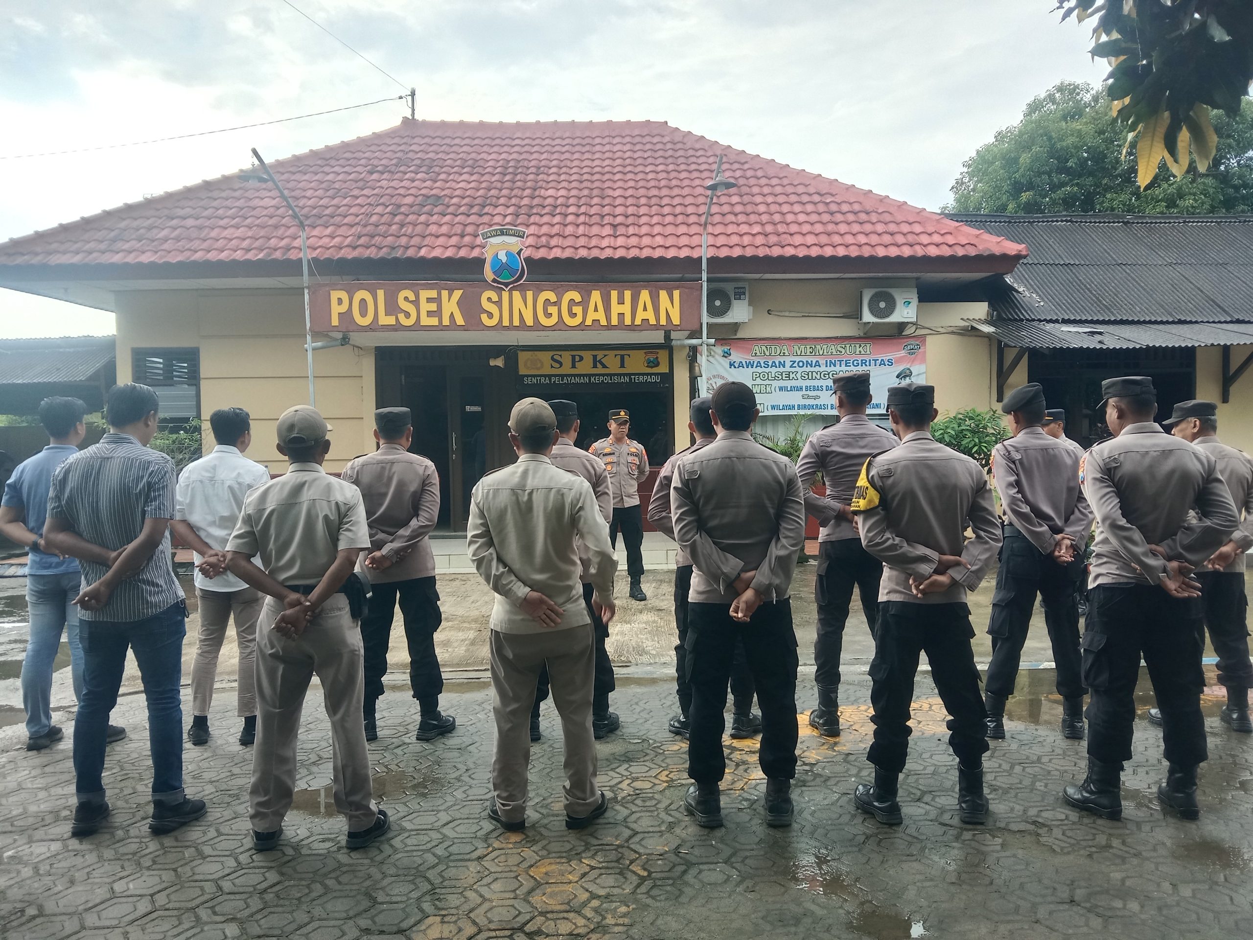 Apel pagi dilaksanakan di halaman mako Polsek Singgahan dipimpin langsung oleh Kapolsek AKP RUKANDAR S.H dan diikuti oleh seluruh anggota Polsek Singgahan.