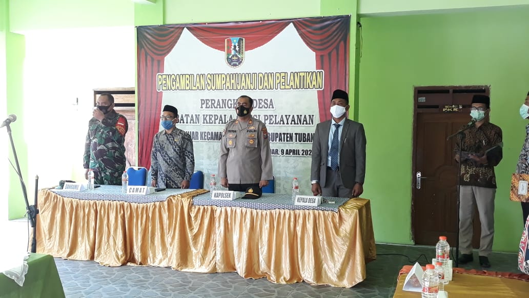 seopini.com – PolresTubanJatim Kapolsek AKP Totok Wijanarko, S.Pd., bersama Forkopimka menghadiri Pelantikan Perangkat Desa Banjar Kecamatan Widang, Jum’at (09/04/2021).