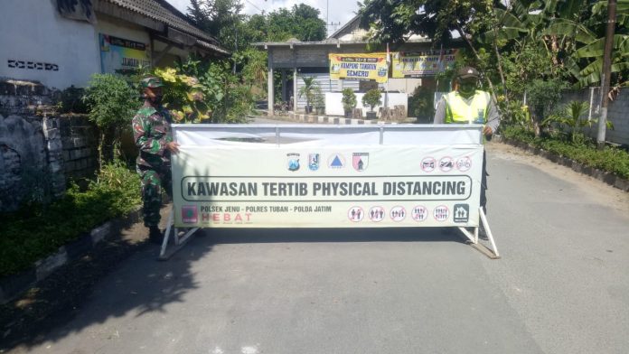Physical distancing di lakukan, biasanya rutin pada siang dan malam hari oleh petugas tracker dari polsek dan Koramil Jenu. Di samping physical distancing juga menghimbau warga untuk menjaga lingkungan sekitar, dan dapat menjaga kesehatan, meningkatkan sistem imun dengan berolahraga karena masa pandemi belum berakhir.