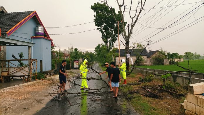 Hujan deras disertai angin kencang yang terjadi pada Minggu sore, (09/2/2025) menyebabkan sebuah pohon yang terletak di tepi jalan Desa Kebonagung Kecamatan Rengel Kabupaten Tuban tumbang. Akibatnya, pohon yang tumbang tersebut menutup akses jalan.