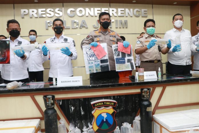 “Petugas melakukan pengejaran dan setelah berhasil menghentikan laju mobil tersebut. Kemudian petugas melakukan penggeledahan kendaraan dan ditemukan 3 buah strerofoam berisi benih lobster yang dibungkus dengan plastik berisi oksigen dengan jumlah total keseluruhan kurang lebih 30.000 ekor benih lobster jenis pasir dan 500 ekor jenis mutiara,” ungkap AKBP Zulham, Wadirkrimsus polda jatim, usai merilis di Bidhumas polda jatim.