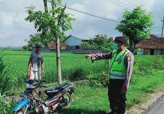 Salah satu yang disampaikan oleh petugas adalah supaya masyarakat yang bekerja di sawah untuk memastikan kendaraan utamanya sepeda motor yang mereka kendarai saat ke sawah daam keadaan aman. Caranya dengan mengunci setir serta bila perlu memasang kunci ganda.