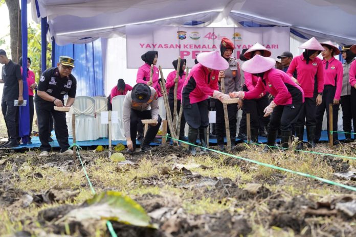 BOJONEGORO – Polres Bojonegoro Polda Jatim bersama pengurus YKB Cabang Bojonegoro menggandeng Perum Perhutani KPH Bojonegoro dan kelompok tani menggelar kegiatan penanaman jagung dan ketela.