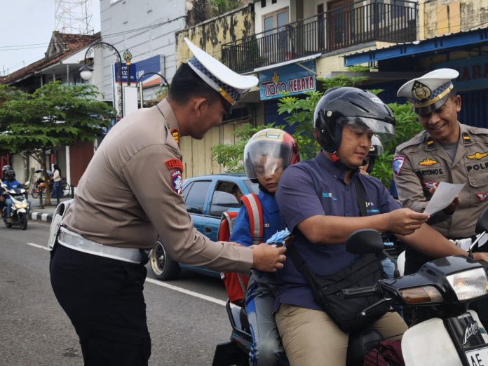 PONOROGO – Dalam rangka pelaksanaan Operasi Patuh Semeru 2025, Satuan Lalu Lintas Polres Ponorogo menggelar kegiatan simpatik dengan memberikan cinderamata kepada para pengendara yang dinilai tertib dalam berlalu lintas.
