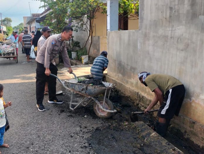 “Fokus aksi kegiatan ini yaitu pembersihan selokan (got), pembuangan sampah liar, kurve (bersih-bersih) lingkungan, serta pembersihkan spanduk/baliho yang tidak pada tempatnya dengan melibatkan instansi terkait,”jelas Iptu Zainullah, Senin (6/4/26).