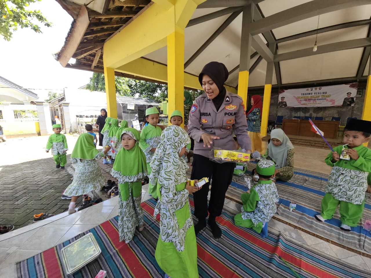 Kegiatan ini digelar untuk memulihkan rasa aman dan mengurangi trauma pasca kejadian angin puting beliung yang melanda wilayah tersebut.