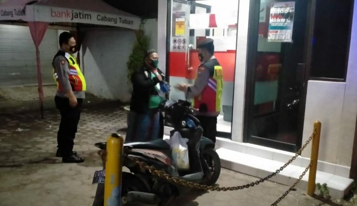 Pada kesempatan malam itu anggota Polsek Bancar melakukan patroli Perbankan ( Bank BRI, Bank BNI, Bank Jatim ) diwilayah kecamatan Bancar serta berikan Himbauan Kamtibmas Kepada Warga yang hendak mengambil uabg di mesin ATM guna mengantisipasi aksi ganjal ATM maupun kriminalitas lainya.