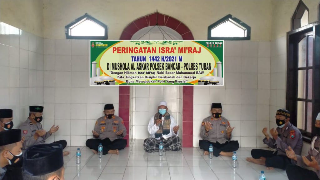 seopini.com-polrestubanpoldajatim Dalam Rangka Peringatan Isra’ Miroj Nabi Muhammad SAW, Polsek Bancar Polres Tuban menggelar Doa bersama dan tausiyah bertempat di mushola Al Asqar Polsek Bancar Desa Bulu Jowo kecamatan Bancar Tuban Jatim. 10 Maret 2021.