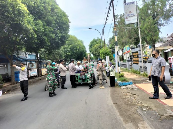 Polsek Bangilan Bersama Rekan TNI, Satpol PP dan Puskesmas Bangilan Laksanakan Penertiban Prokes