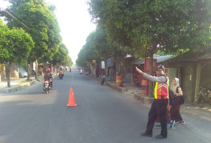 Seperti pagi tadi nampak dalam foto AIpda Jauharuddin melaksanakan pengaturan arus Lilin di MI Slafiyah AlFalah Bangilan. Aipda Jauharuddin menyeberangkan anak sekolah dan memperlambat laju kendaraan.