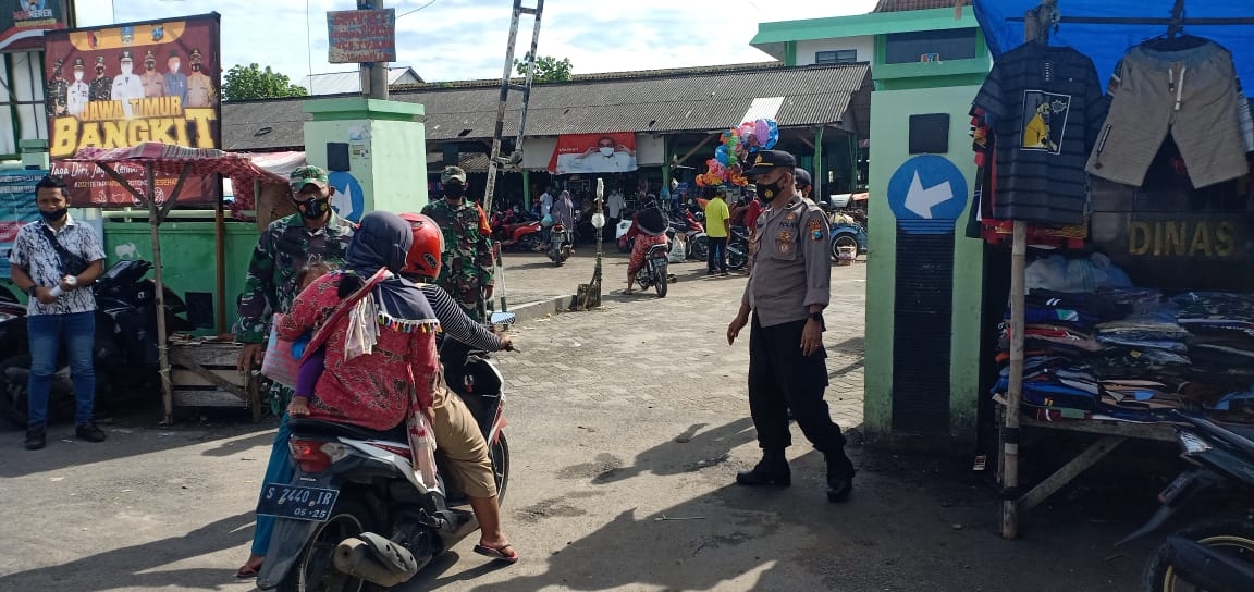 seopini.com-polrestubanpoldajatim Polsek Bangilan Polres Tuban Polda Jatim – Dalam rangka peningkatan disiplin dan penegakan hukum protokol kesehatan untuk pencegahan dan pengendalian Covid-19 di wilayah Kecamatan Bangilan Kabupaten Tuban, personel Polsek Bangilan melaksanakan kegiatan pemantauan penggunaan masker, di Pasar Kecamatan Bangilan Tuban, Kamis (11/3/21).