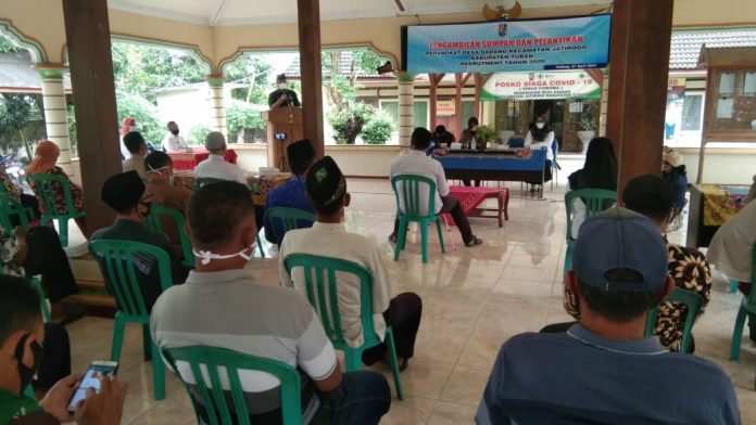 Sesuai dengan jadwal panitia, maka pengambilan sumpah janji dan pelantikan perangkat Desa Sadang Kecamatan Jatirogo Kabupaten Tuban dilaksanakan di Balai Desa Sadang. Rabu Siang, (7/04/2021).