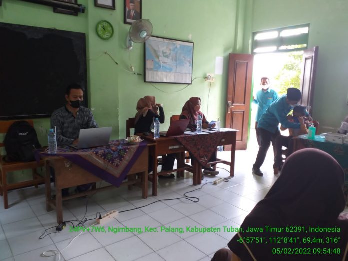 Polres Tuban, Kapolsek Palang AKP SIMON TRIYONO selalu Kapolsek Palang Polres Tuban membuka Gerai Vaksinasi di Sekolah MI Miftahul Huda Desa Ngimbang Kecamatan Palang Kabupaten Tuban untuk anak usia 6-11 Tahun dan memerintahkan Bhabinkamtibmas bersama Babinsa melaksanakan pengamanan dan pengawasan pelaksanaan Vaksinasi COVID-19 di Gerai vaksinasi yang berada di Sekolah MI Miftahul Huda Desa Ngimbang Kecamatan Palang Kabupaten Tuban, pada hari Sabtu (05/02/2022).